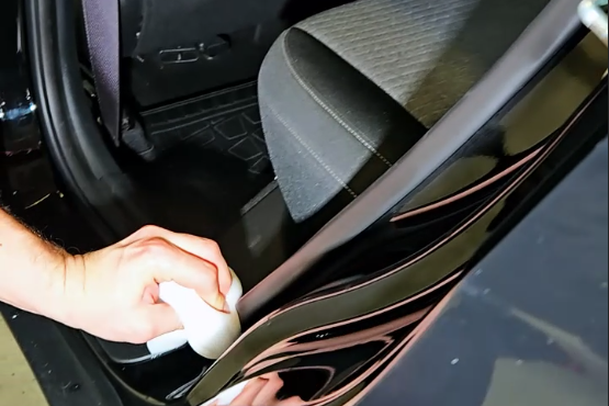 Обработка резиновых уплотнителей всех дверей и багажника полимерной, силиконовой смазкой.