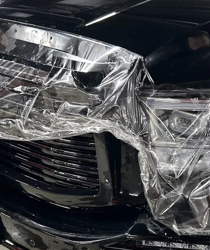 Защита бампера автомобиля полиуретановой плёнкой для предотвращения механических повреждений, царапин, сколов и воздействия дорожных реагентов, обеспечивающая сохранность внешнего вида и защиту от ультрафиолета с возможностью лёгкой полировки мелких дефек